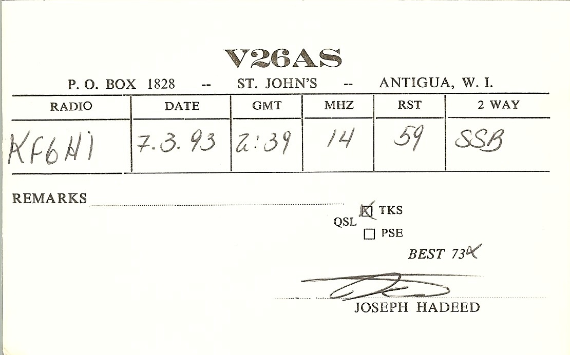 KF6HI QSO with V26AS (click for QRZ info), information for above highlighted contact: