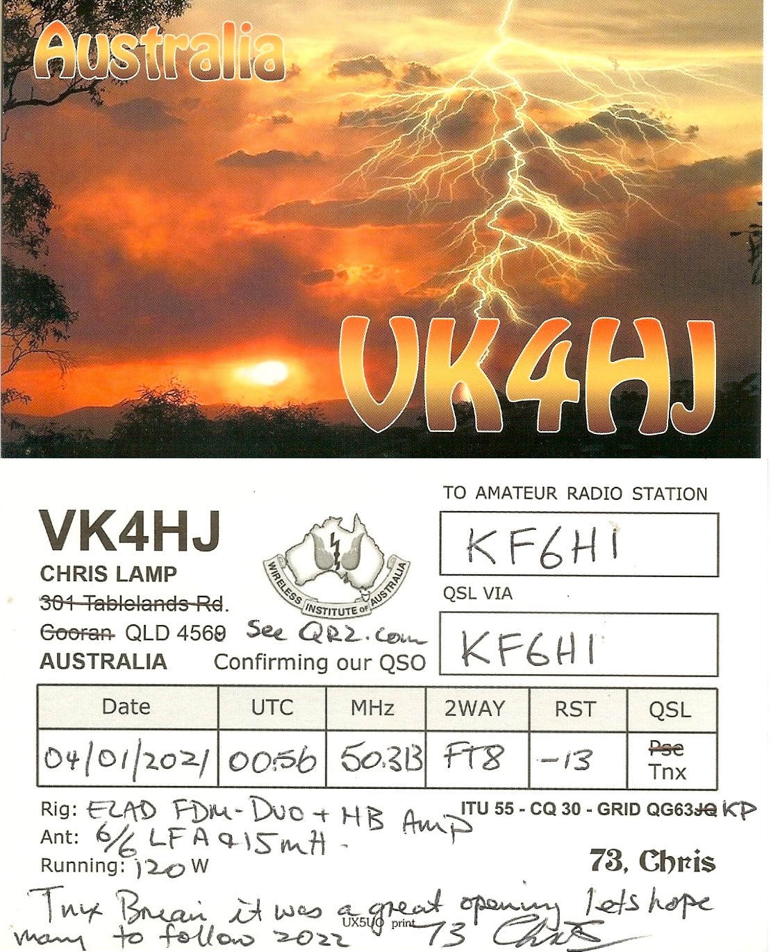 Number of QSOs found on 50 MHz with Australia : 4 | |||||||||||||||||||||||||||||||||||||||||