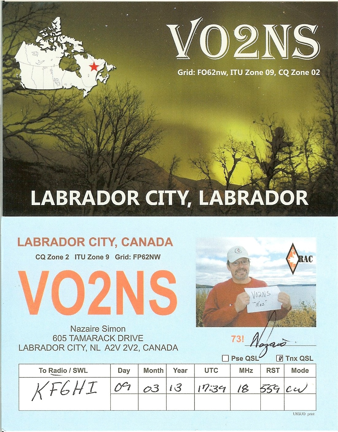 KF6HI QSO with VO2NS (click for QRZ info), information for above highlighted contact: