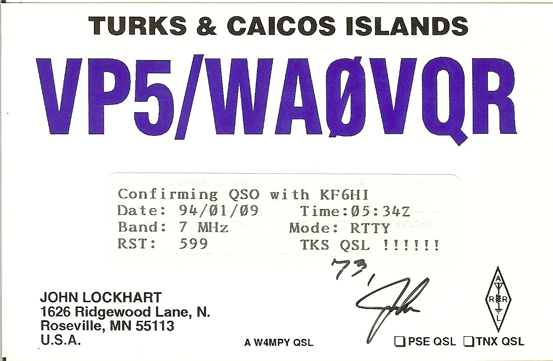 | VP5/WA0VQR | 1994-01-08 | 05:35 | RTTY | Y | Y | N | N |