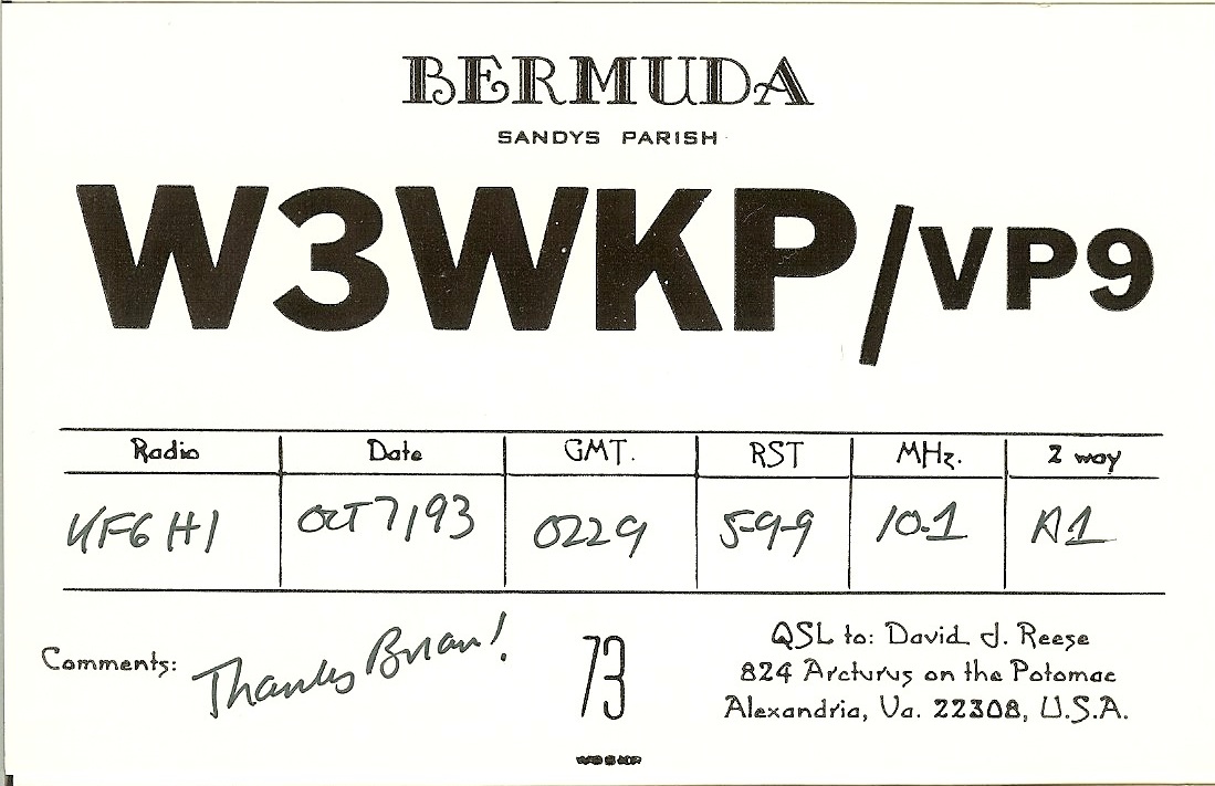 KF6HI QSO with VP9/W3WKP (click for QRZ info), information for above highlighted contact: