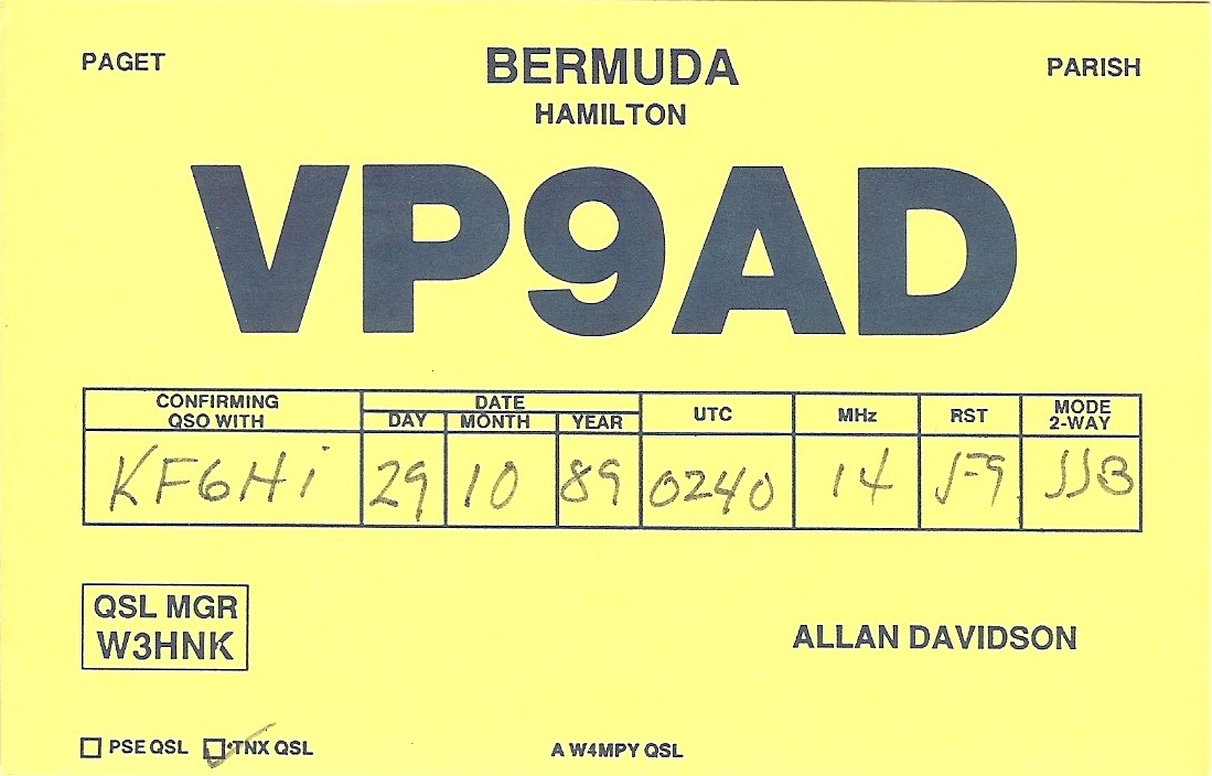 KF6HI QSO with VP9AD (click for QRZ info), information for above highlighted contact: