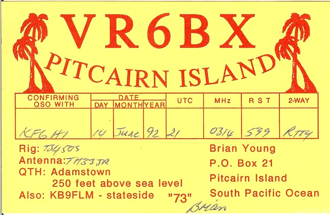 Number of QSOs found on 21 MHz with Pitcairn I. : 8 |