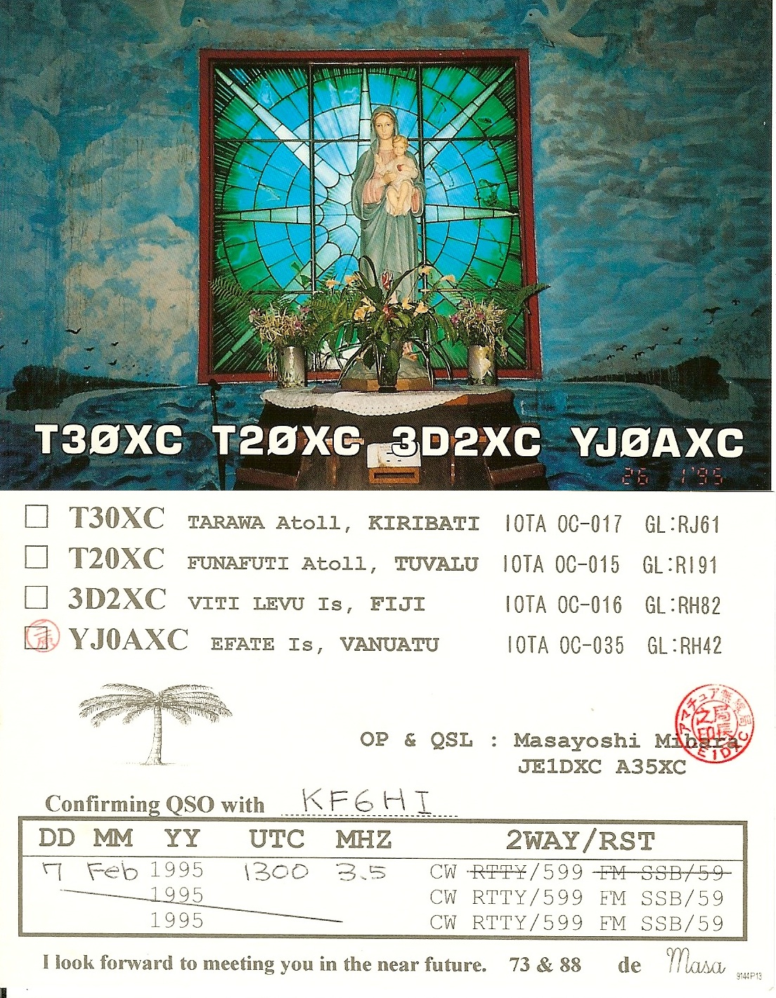 Number of QSOs found on 3.5 MHz with Vanuatu : 1 | |||||||||||||||||