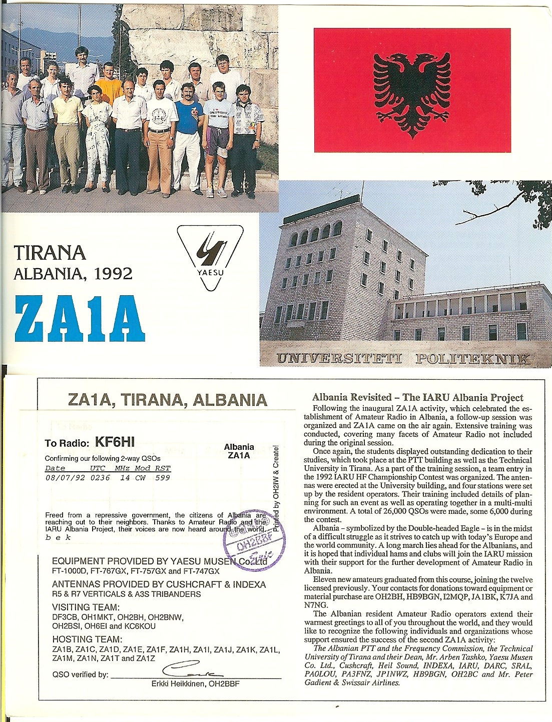 | Number of QSOs found on 14 MHz with Albania : 2 | |||||||||||||||||||||||||