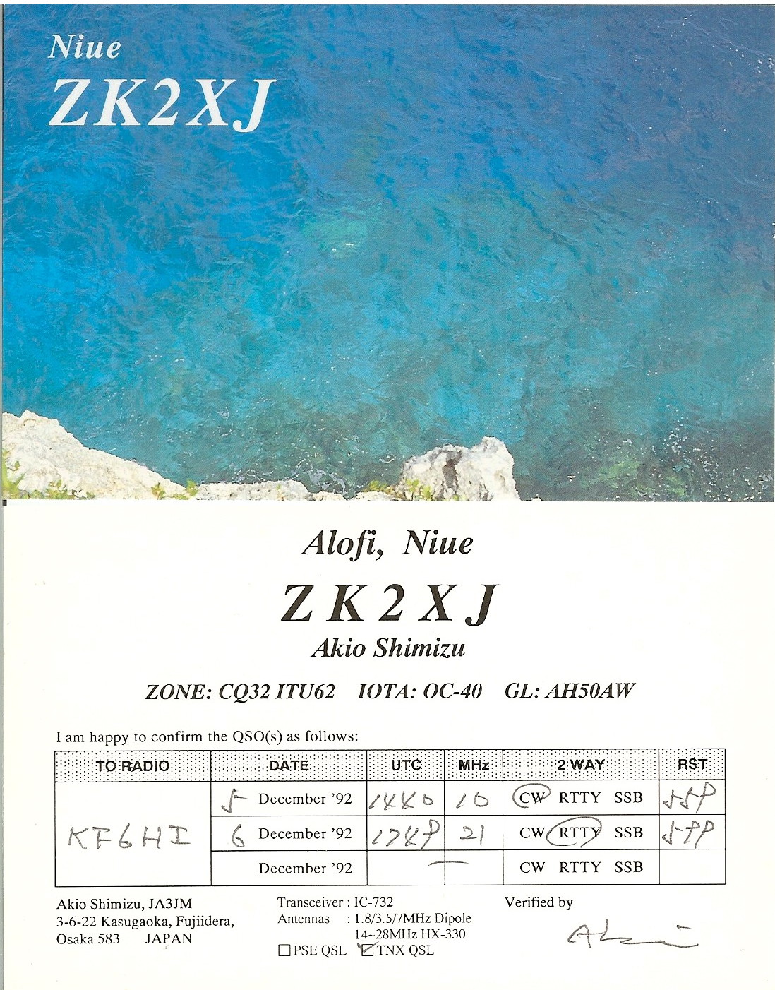 KF6HI QSO with ZK2XJ (click for QRZ info), information for above highlighted contact: