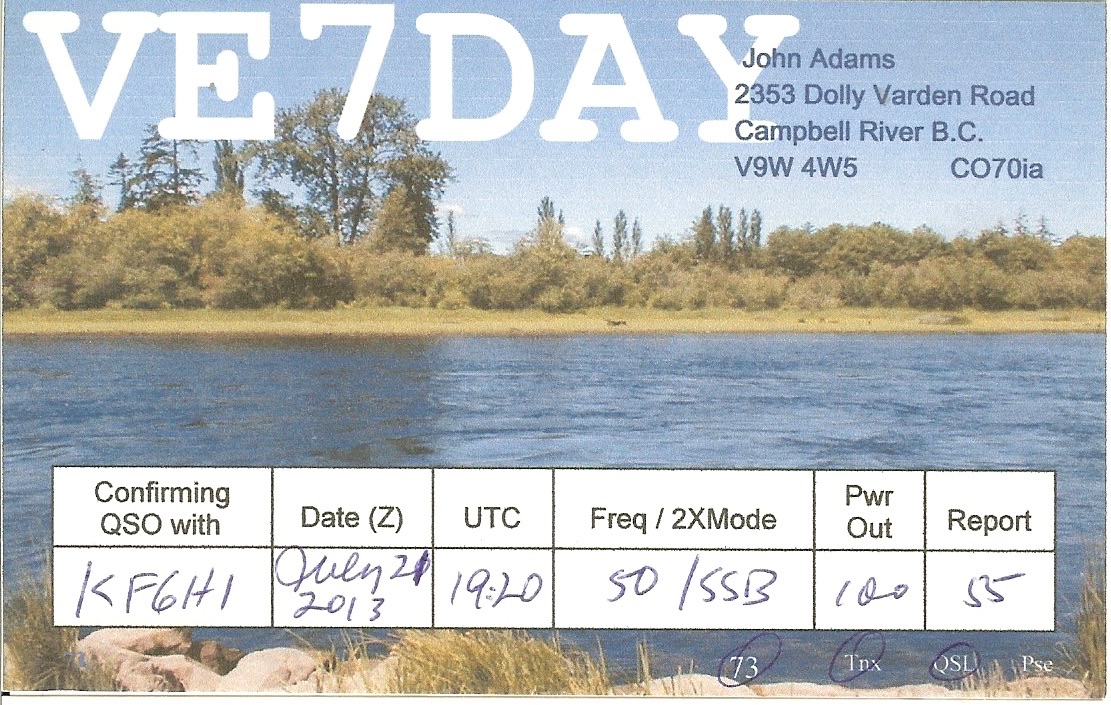 KF6HI QSO with VE7DAY (click for QRZ info), information for above highlighted contact: