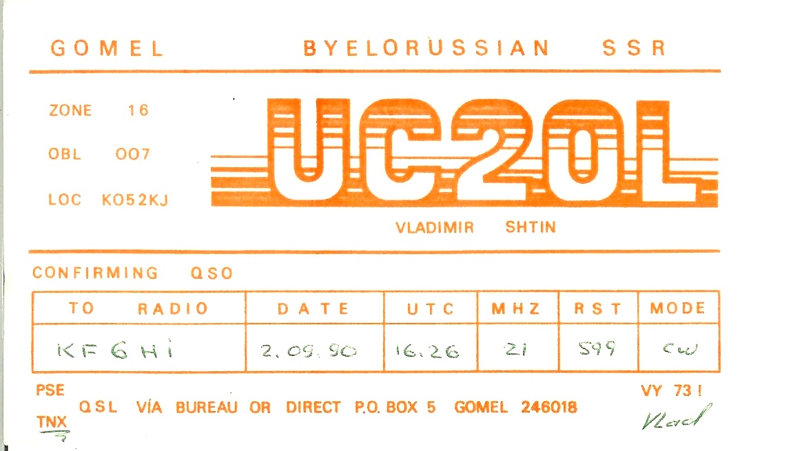 KF6HI QSO with UC2OL (click for QRZ info), information for above highlighted contact: