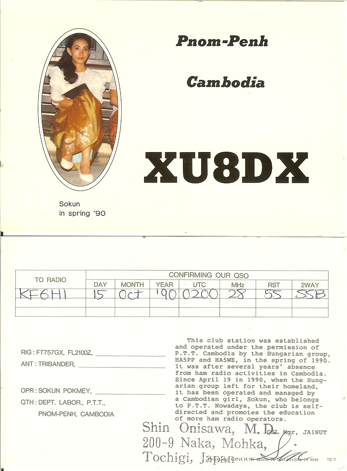 | Number of QSOs found on 28 MHz with Cambodia : 1 | |||||||||||||||||