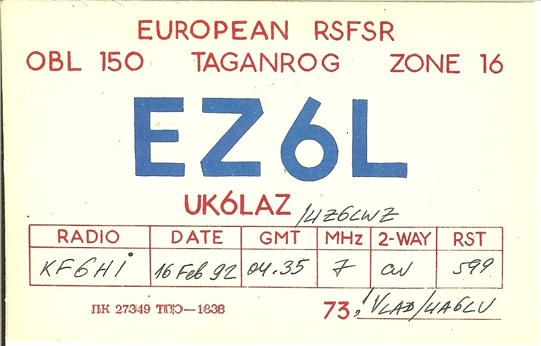 | RZ6LYL | 1991-02-16 | 14:25 | CW | Y | N | N | N |