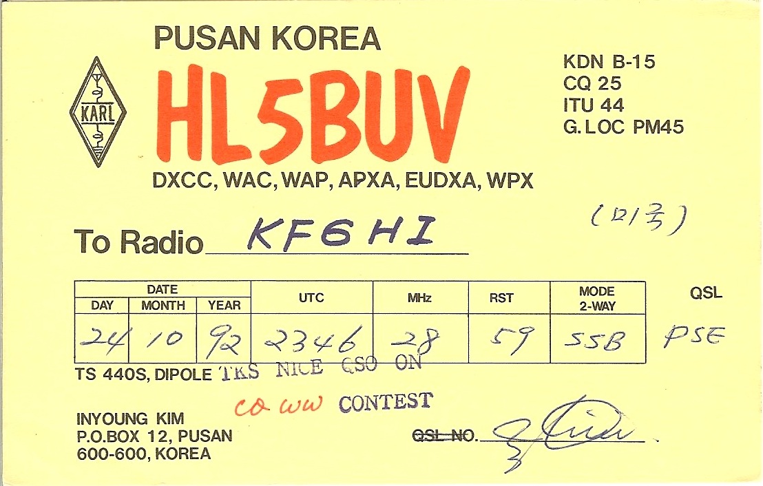 | HL5BUV | 1992-10-24 | 23:46 | SSB | Y | Y | N | N |