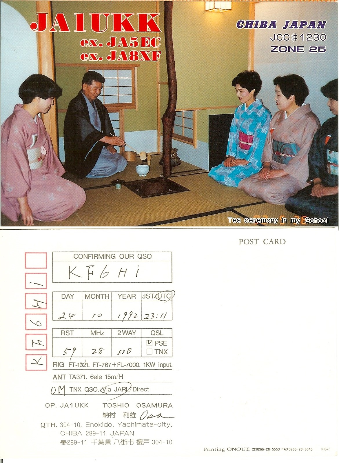 KF6HI QSO with JA1UKK (click for QRZ info), information for above highlighted contact: