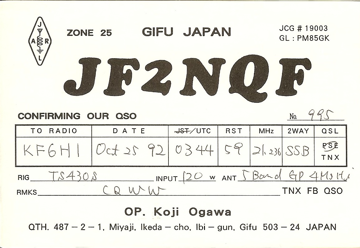 KF6HI QSO with JF2NQF (click for QRZ info), information for above highlighted contact:
