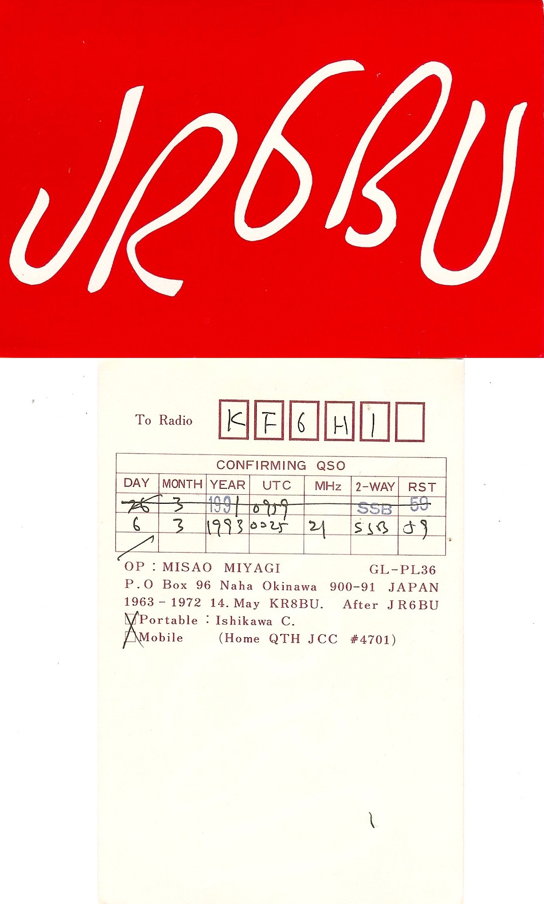 KF6HI QSO with JR6BU (click for QRZ info), information for above highlighted contact: