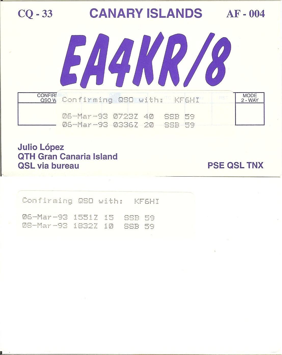 | EA8/EA4KR | 1993-03-07 | 18:31 | SSB | N | Y | N | N |