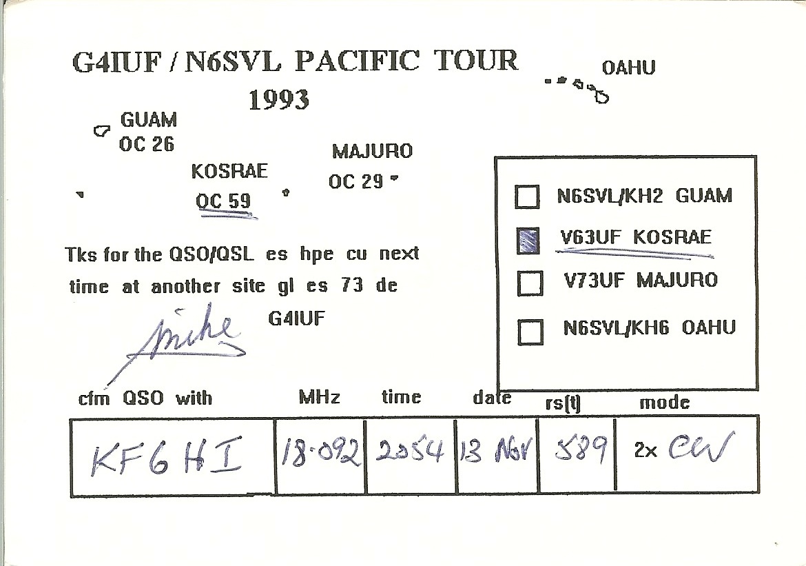 | Number of QSOs found on 18 MHz with Micronesia : 2 | |||||||||||||||||||||||||