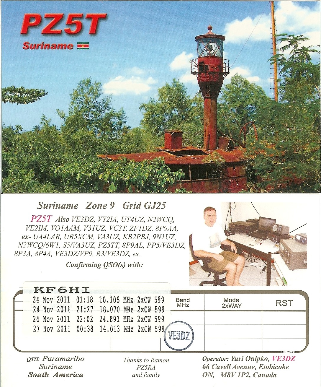 | Number of QSOs found on 10 MHz with Suriname : 1 | |||||||||||||||||