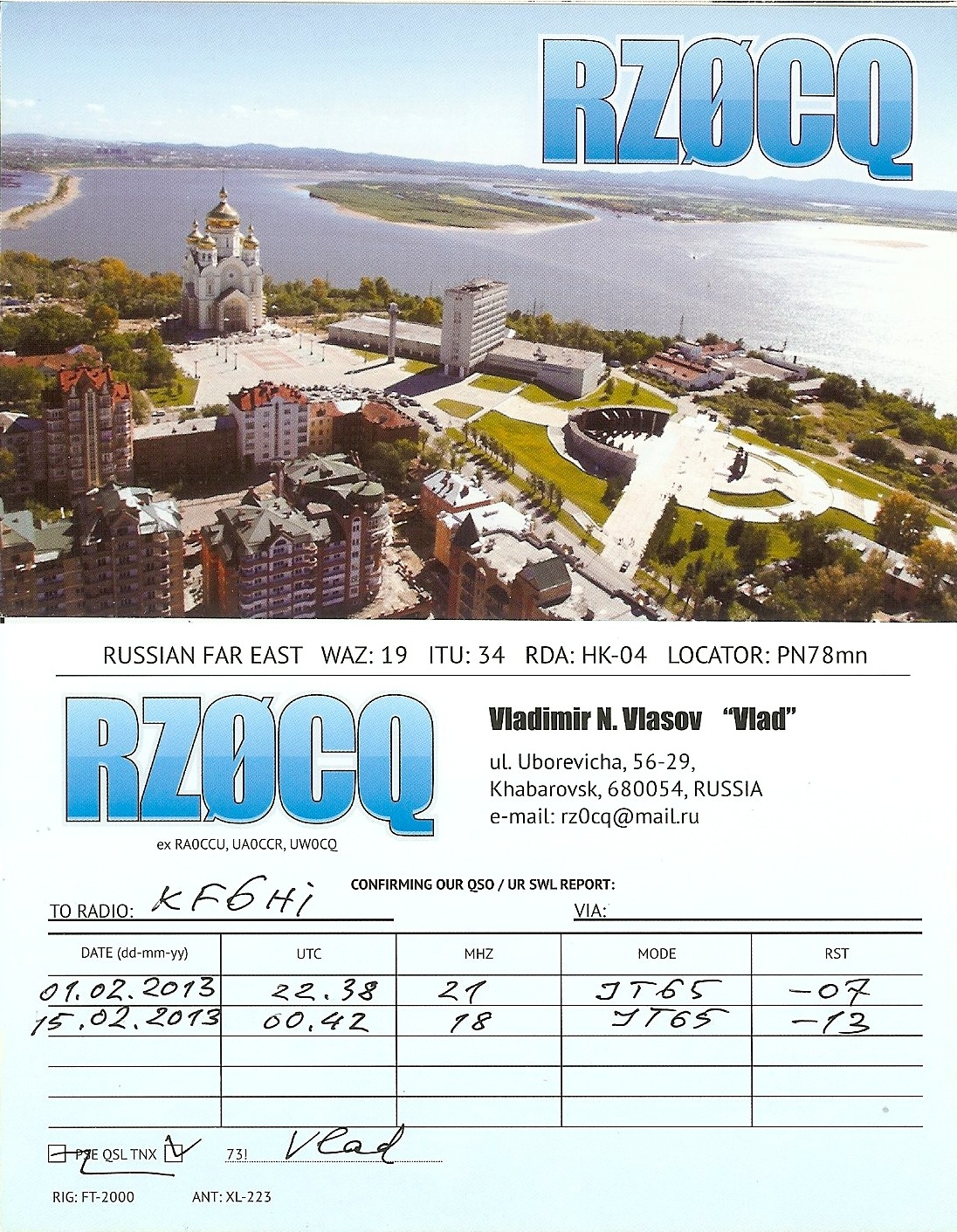 KF6HI QSO with RZ0CQ (click for QRZ info), information for above highlighted contact: