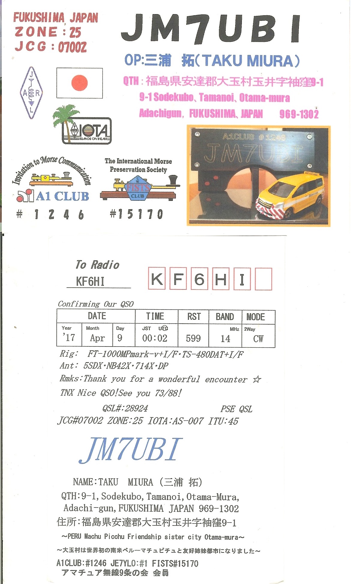 KF6HI QSO with JM7UBI (click for QRZ info), information for above highlighted contact: