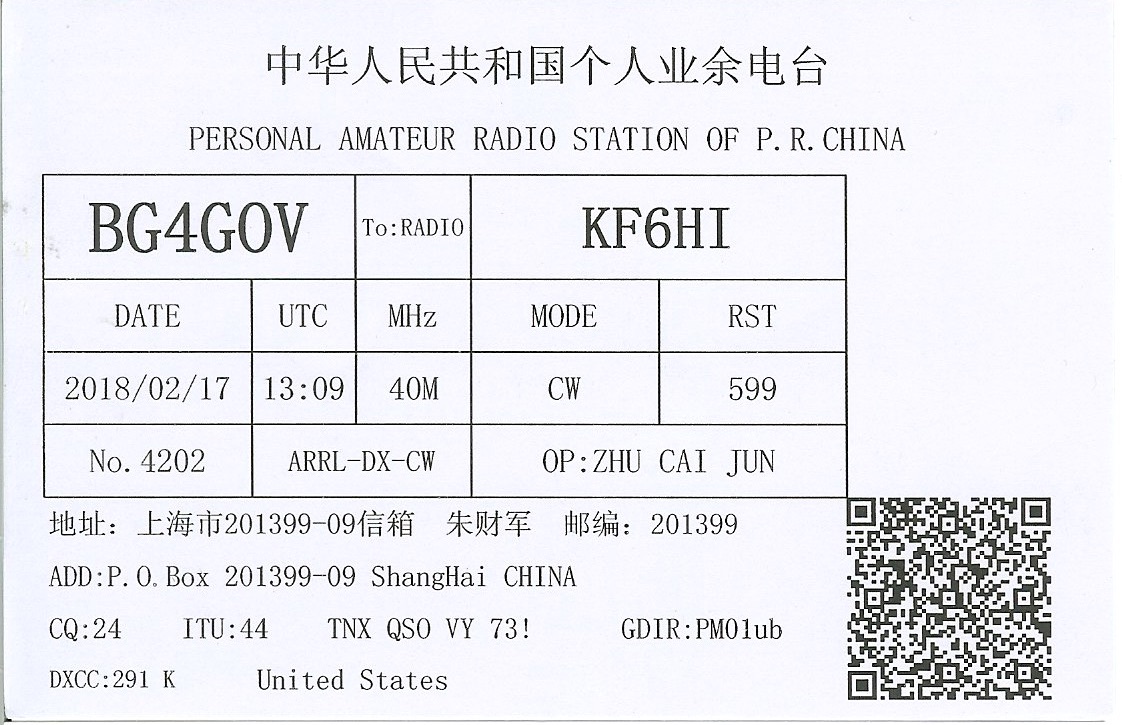 KF6HI QSO with BG4GOV (click for QRZ info), information for above highlighted contact: