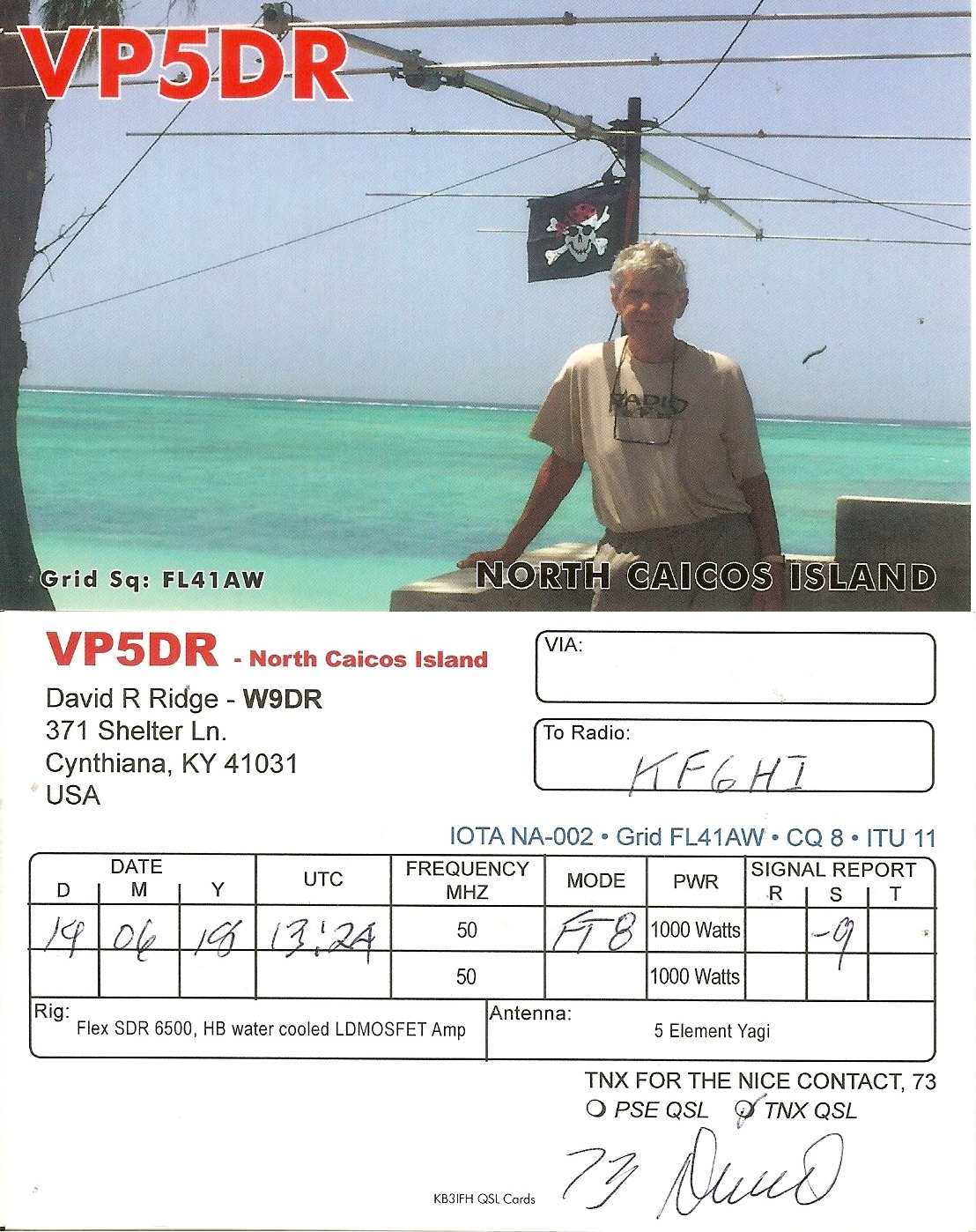 KF6HI QSO with VP5DR (click for QRZ info), information for above highlighted contact:
