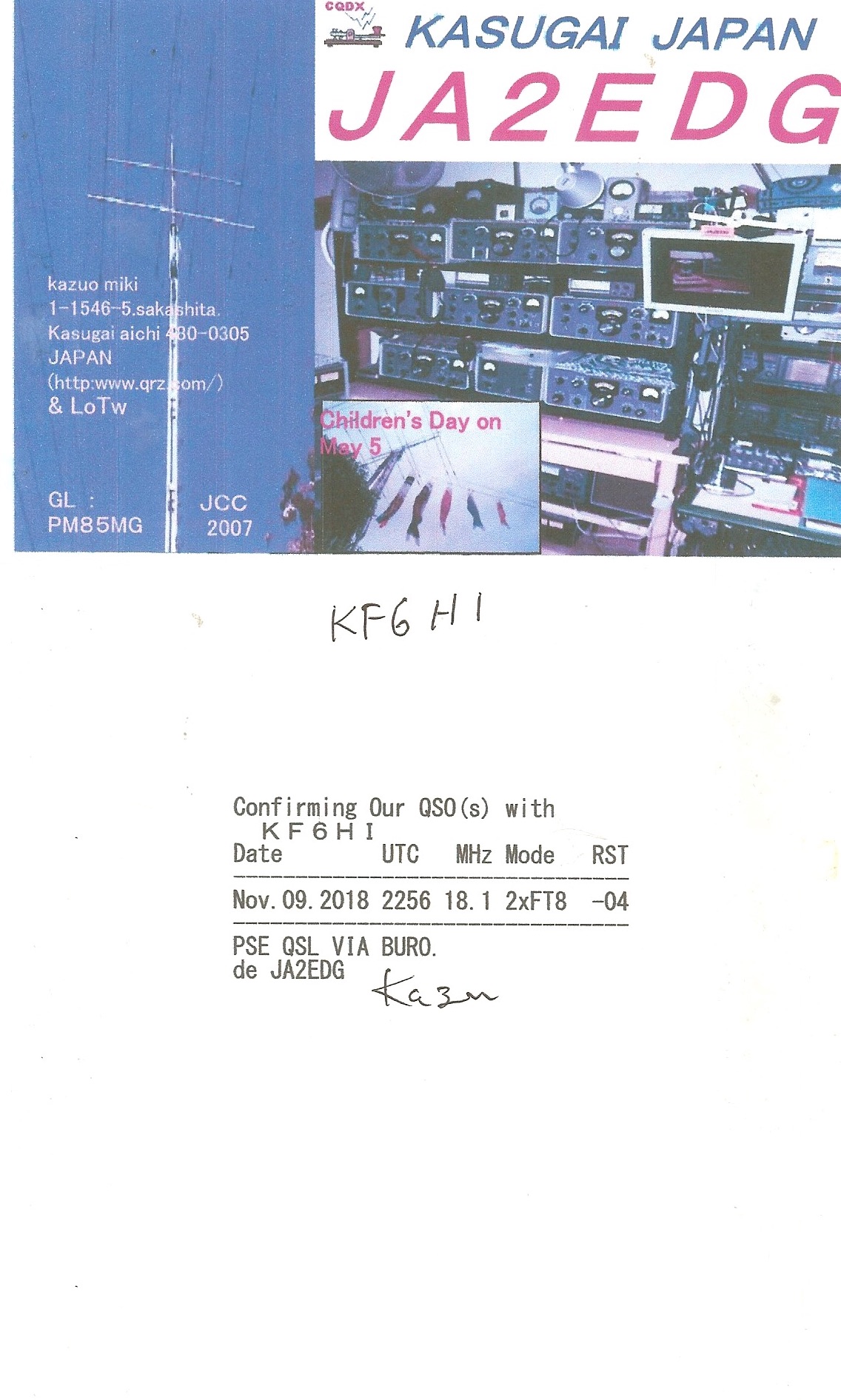 KF6HI QSO with JA2EDG (click for QRZ info), information for above highlighted contact: