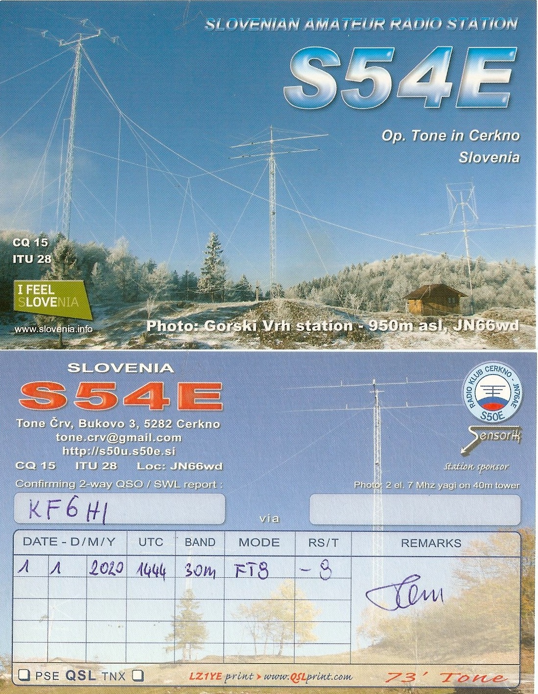 | Number of QSOs found on 10 MHz with Slovenia : 1 | |||||||||||||||||